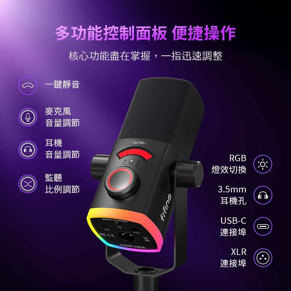 FIFINE 進階 動圈式 直播 清晰人聲 電競 USB-C 麥克風 支架組 AM8 PROT