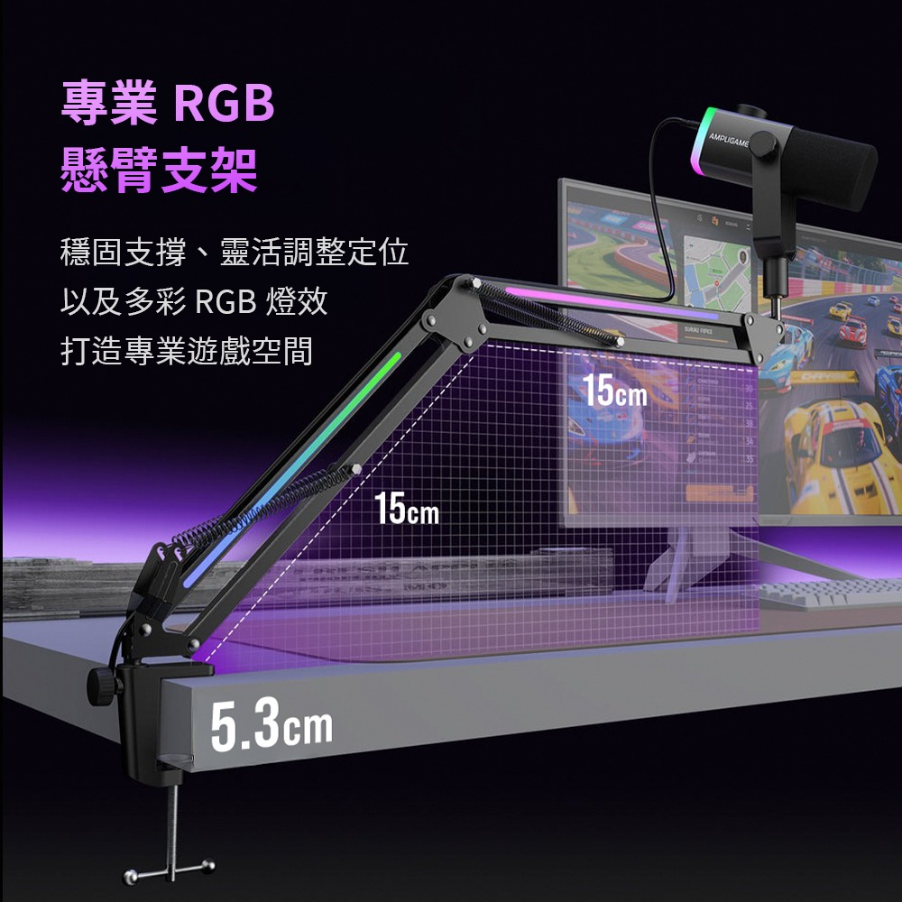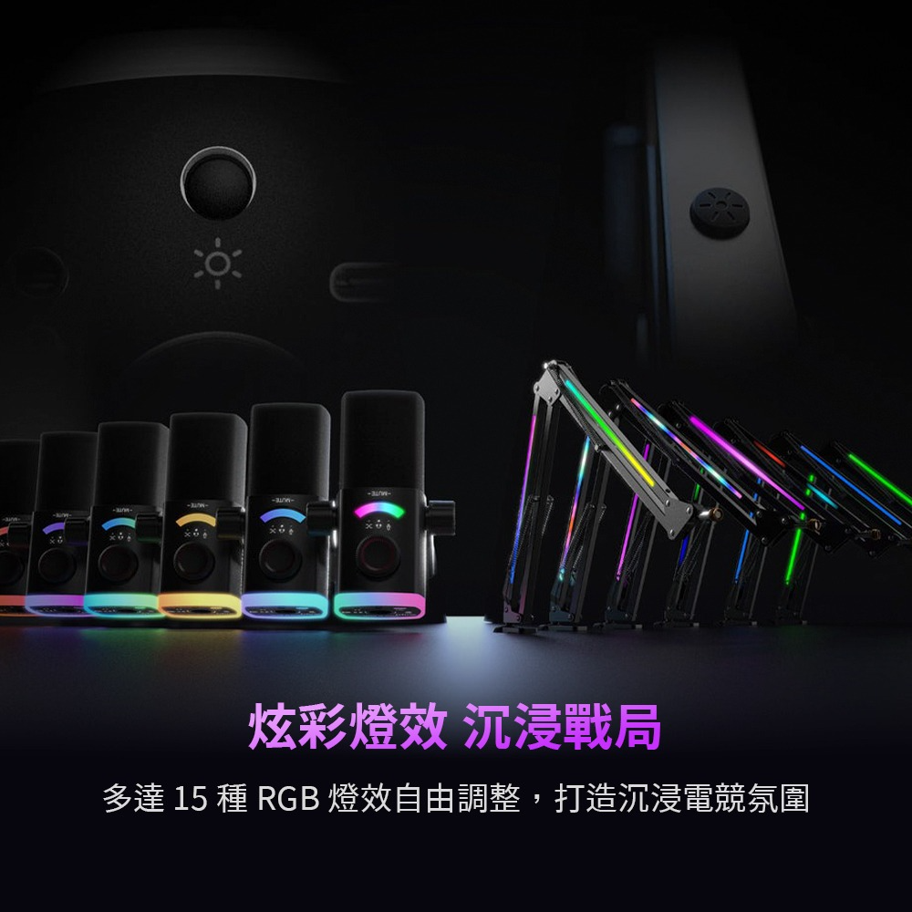 AM8 Pro 與懸臂支架皆有多達 15種 RGB 燈效可自由調整,點亮獨特電競魂