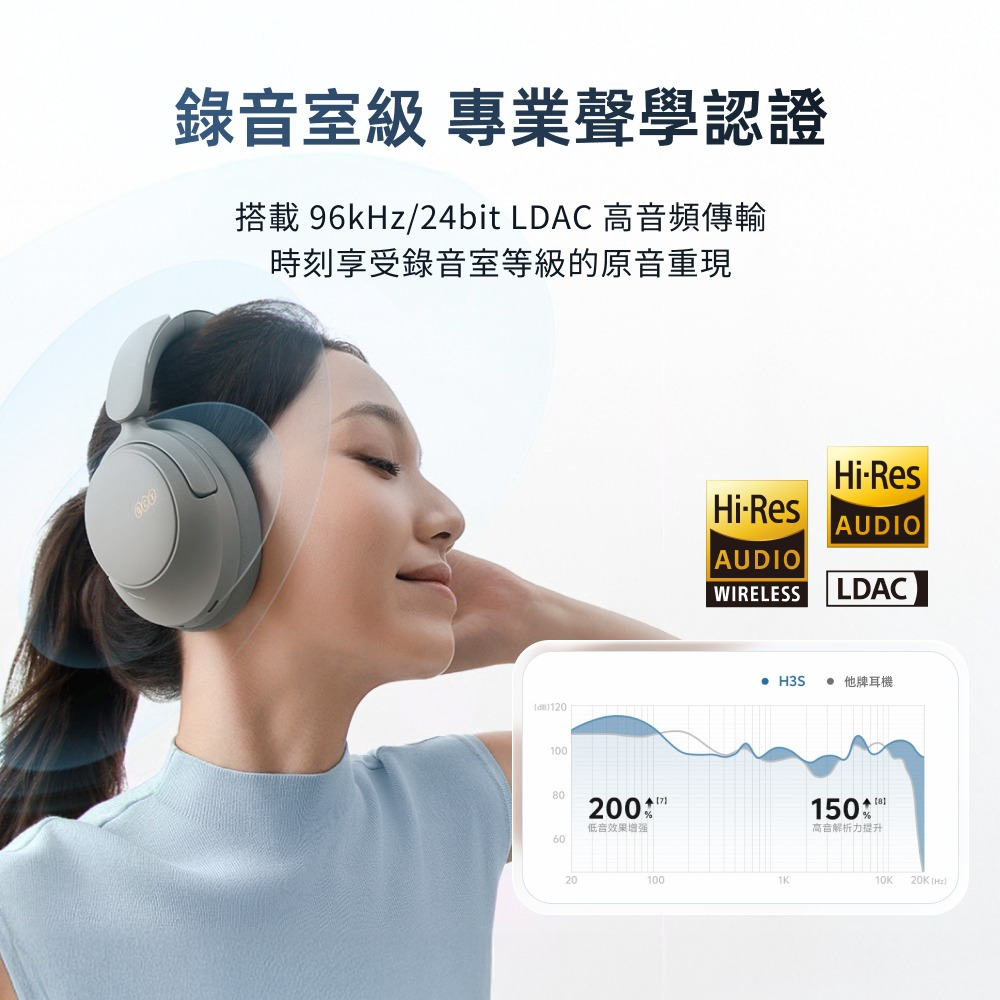 有線/無線 Hi-Res Audio 雙金標認證,支援 LDAC 高解析傳輸,精準還原聲音細節