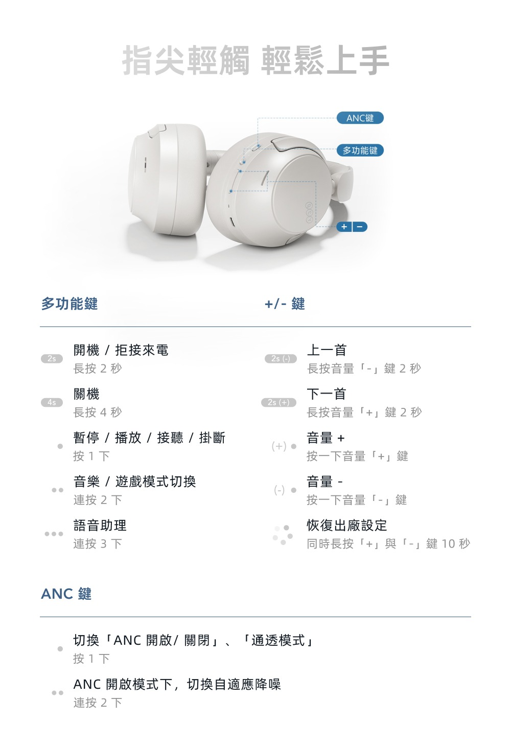 僅 244 g 輕量機身,人體工學頭梁搭配柔軟蛋白皮耳罩,久戴不壓耳、不悶熱
