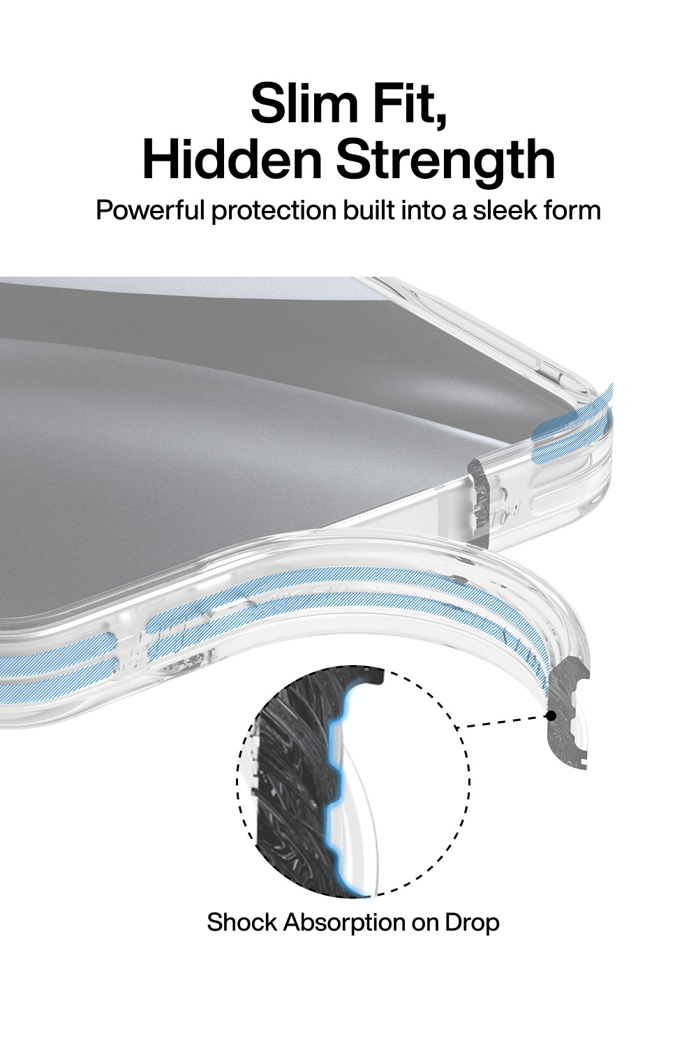 ∙四角配置 air layer bumper 緩衝層,提升抗震能力