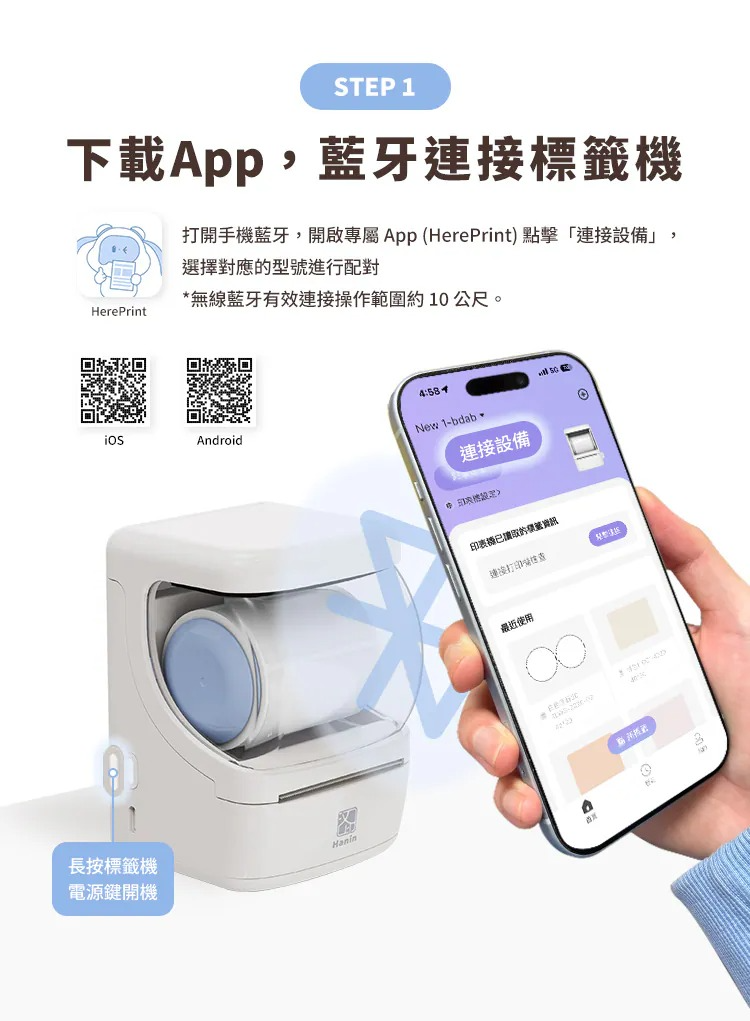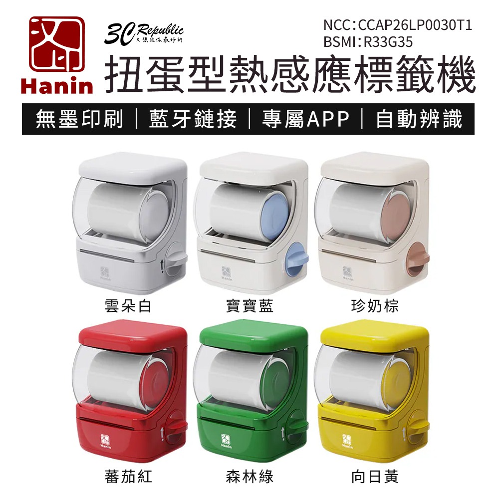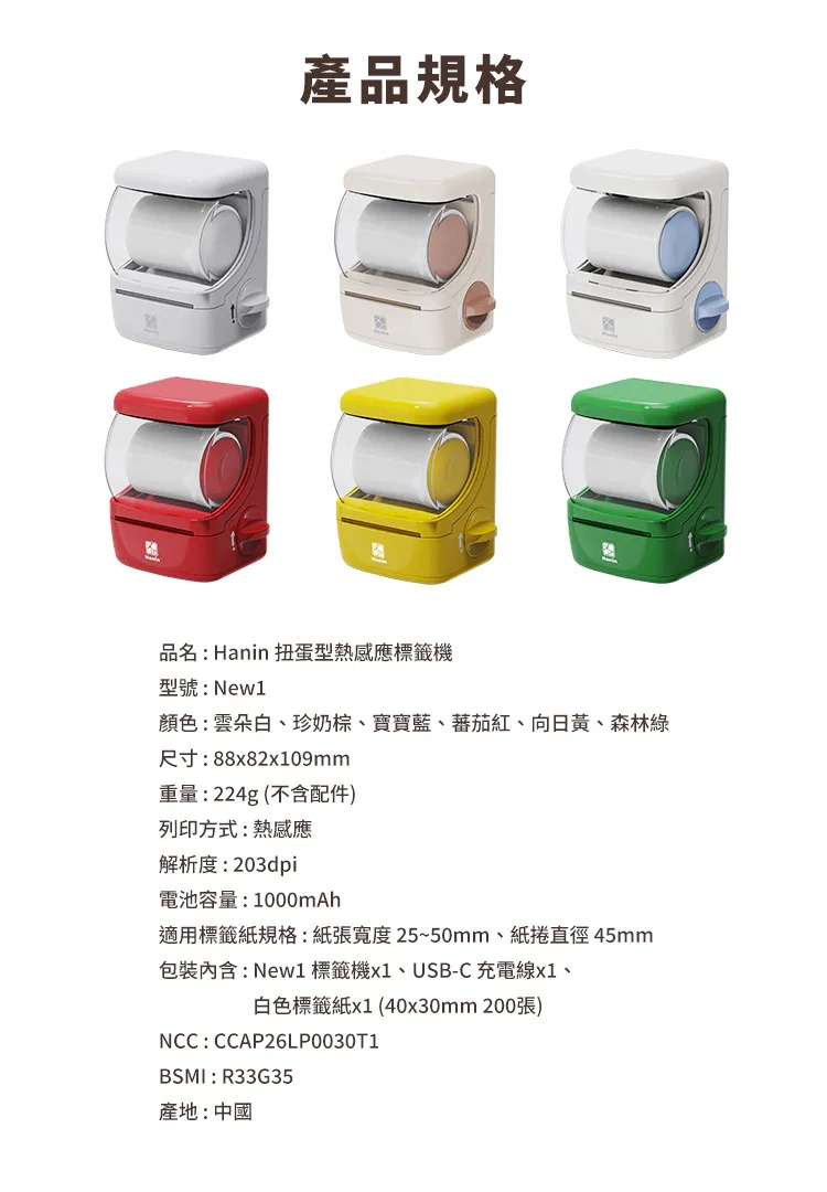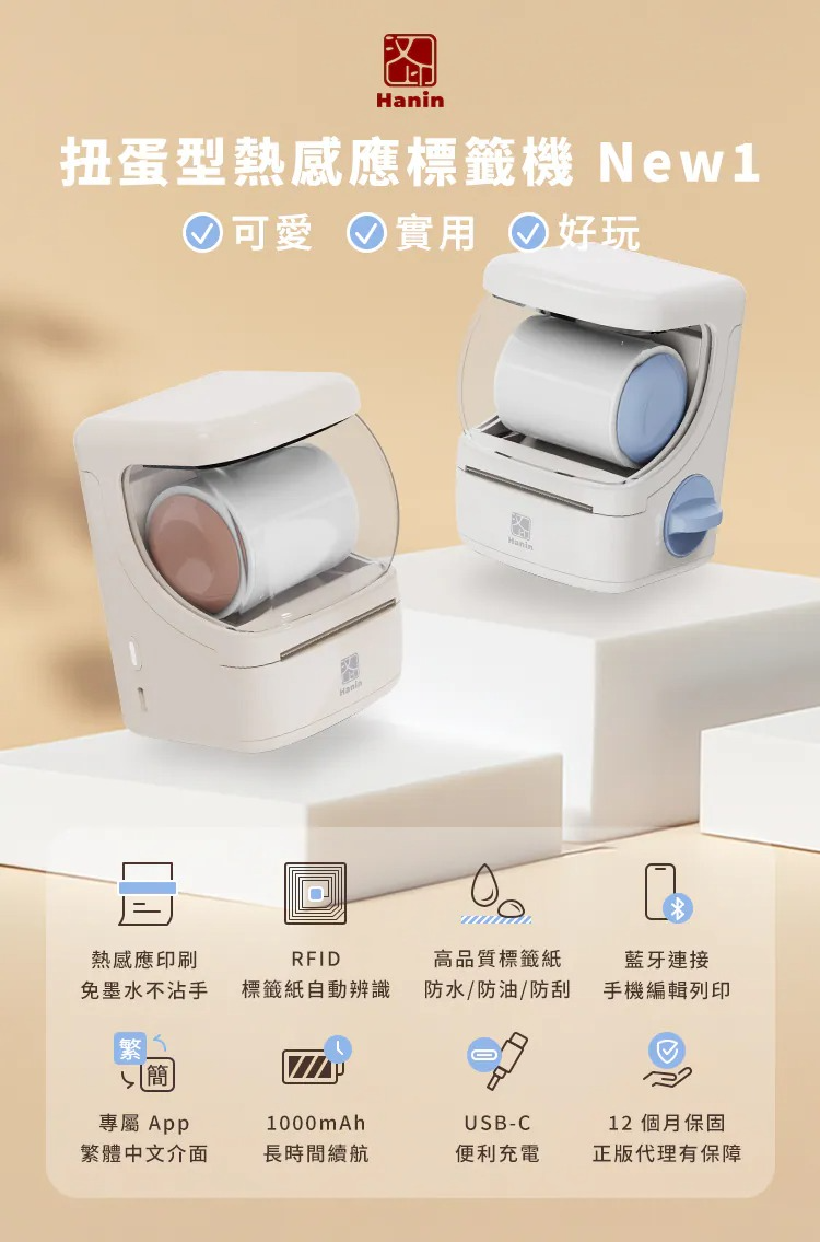 Hanin 扭蛋型 RFID 無需墨水 標籤紙 藍牙 無線 熱感應 標籤機 New1