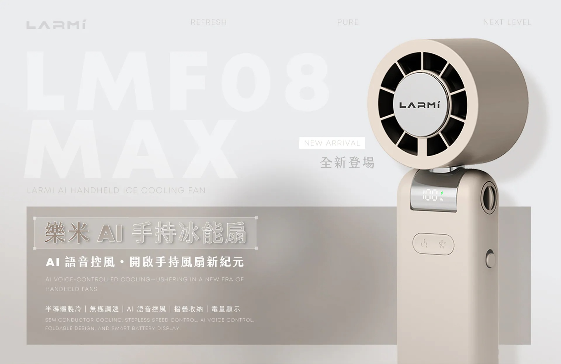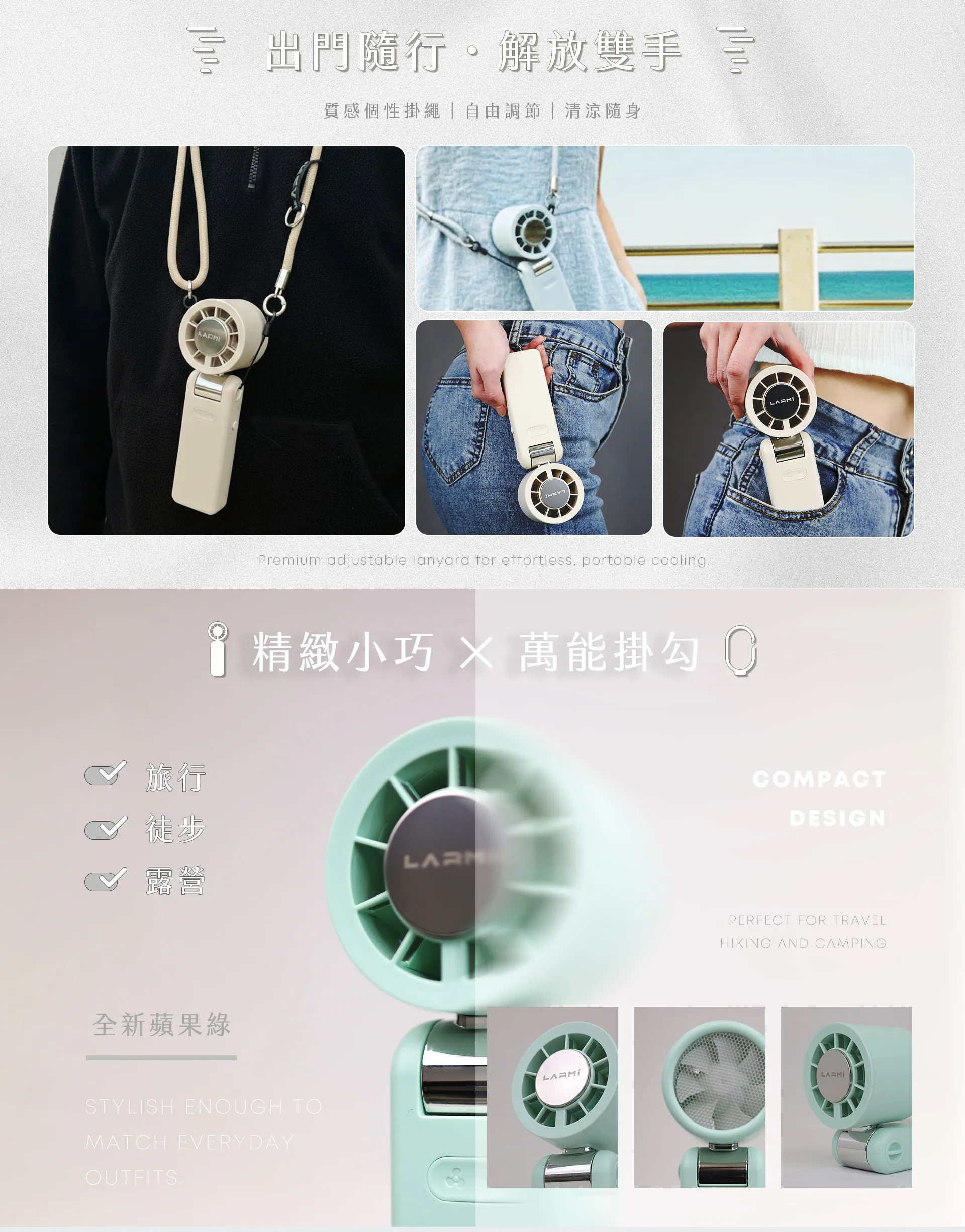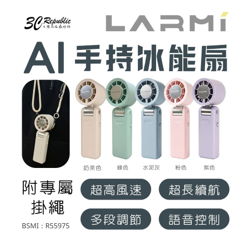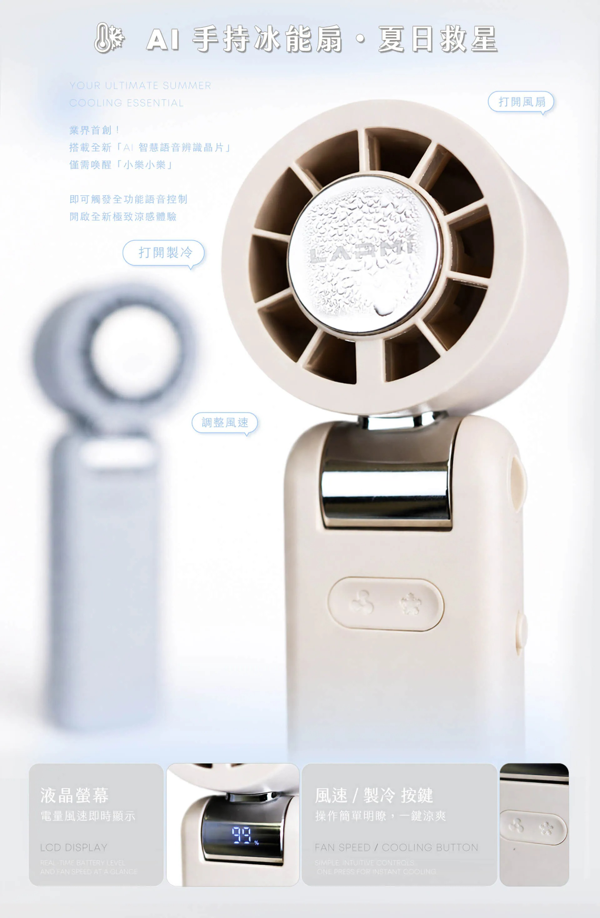 樂米 LARMI AI 手持 風扇 冰能扇 180° 旋轉 附 掛繩 AI 語音 控制