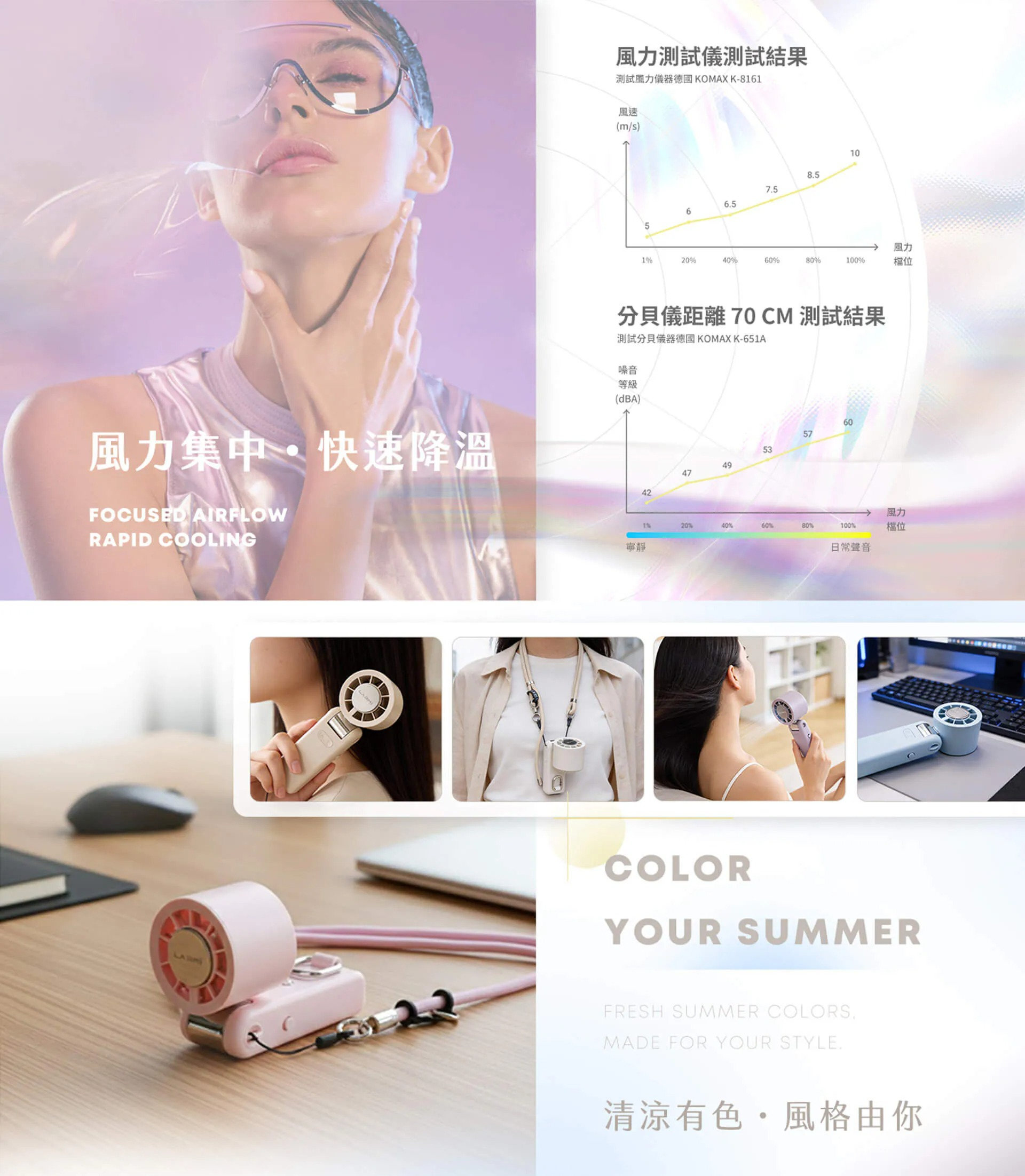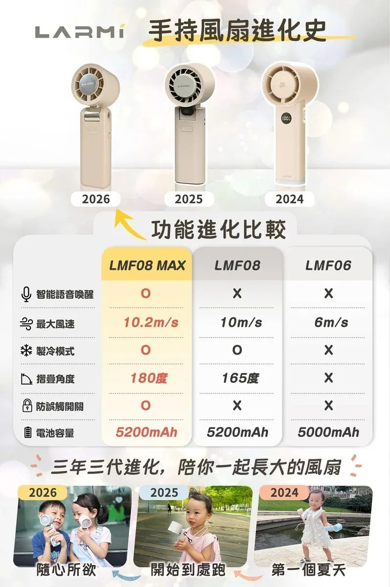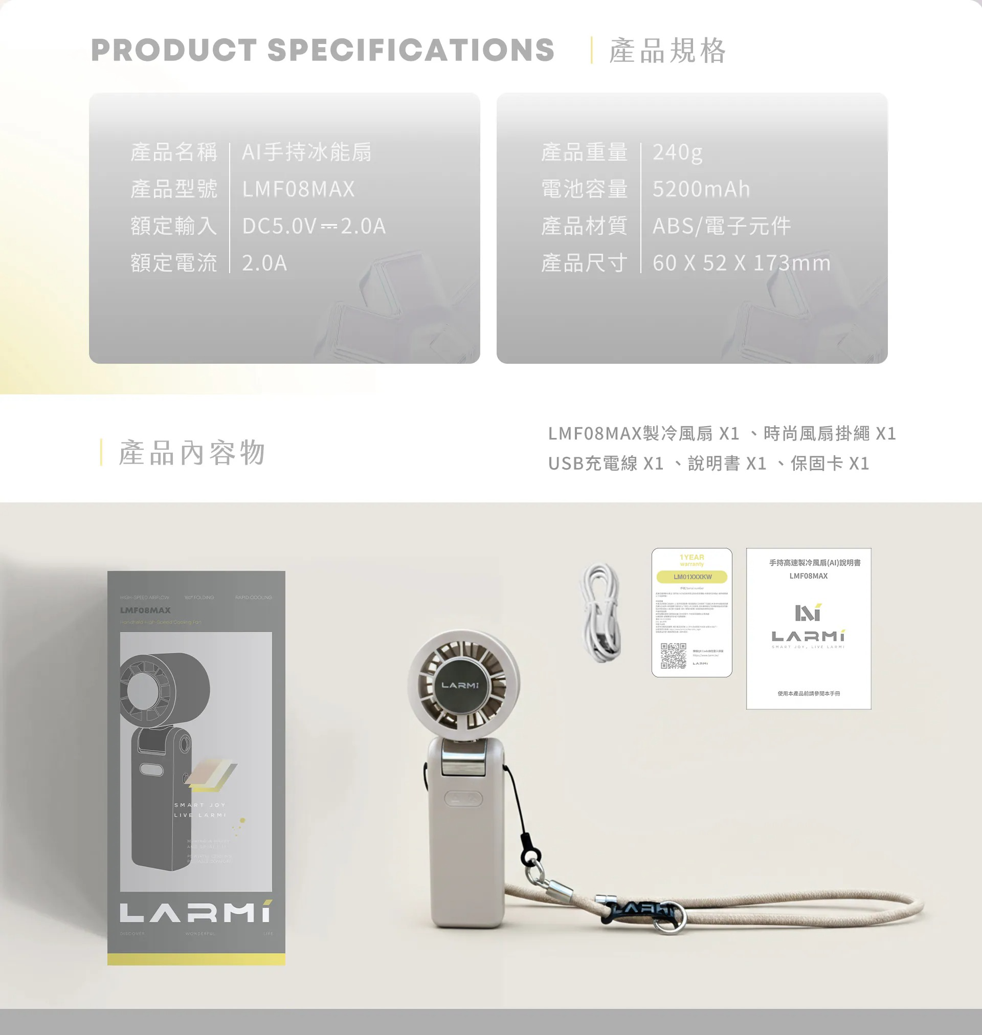 樂米 LARMI AI 手持 風扇 冰能扇 180° 旋轉 附 掛繩 AI 語音 控制