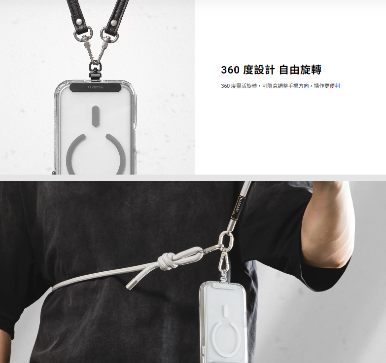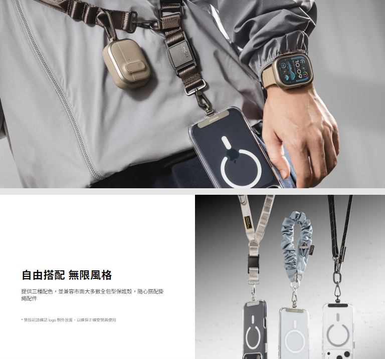 - 提供三種配色,並兼容市面大多數全包型保護殼,隨心搭配掛繩配件