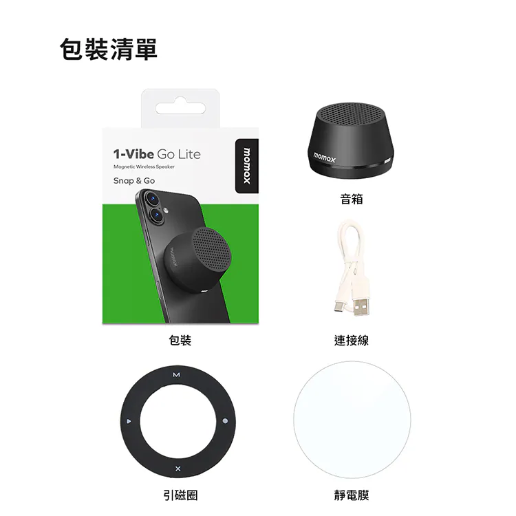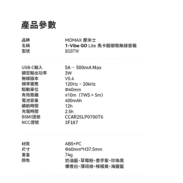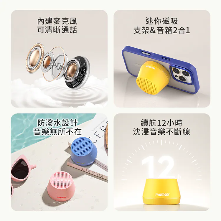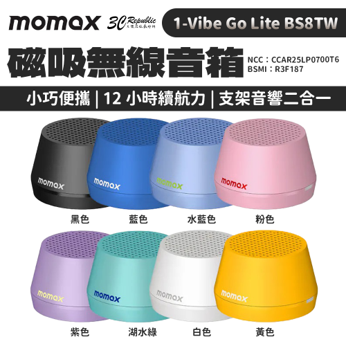 Momax 1-Vibe Go Lite BS8TW 磁吸 無線 音箱 防水 續航力