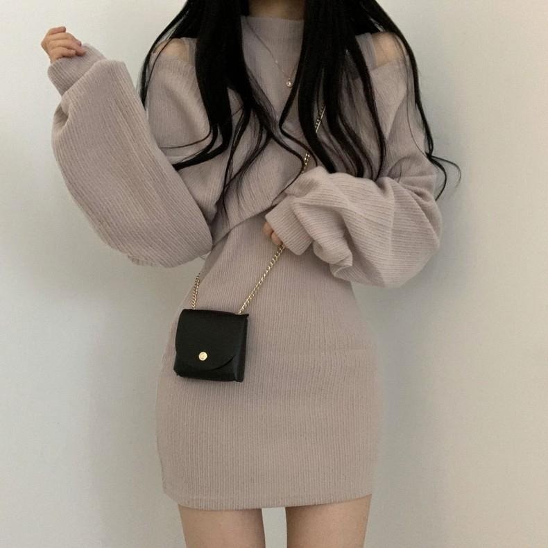 高領露肩針織短洋【589】