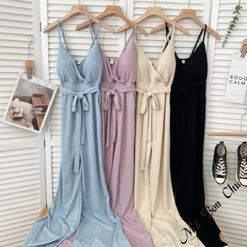 春夏韓版INS韓系女裝 細肩帶 連身褲 落地褲 罩杯上衣 爆乳 開叉長褲 Bonchu