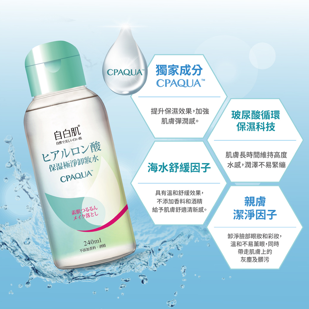 商品名稱自白肌 肌玻尿酸保濕極淨卸妝水240ml