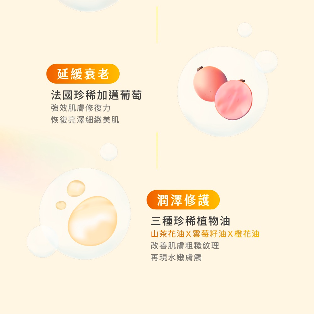 ◉修復肌齡,透過獨特細胞培養技術◉緊緻賦活,地中海的灌木聚繖岩薔◉多重乳化技術打造黃金比例2:8