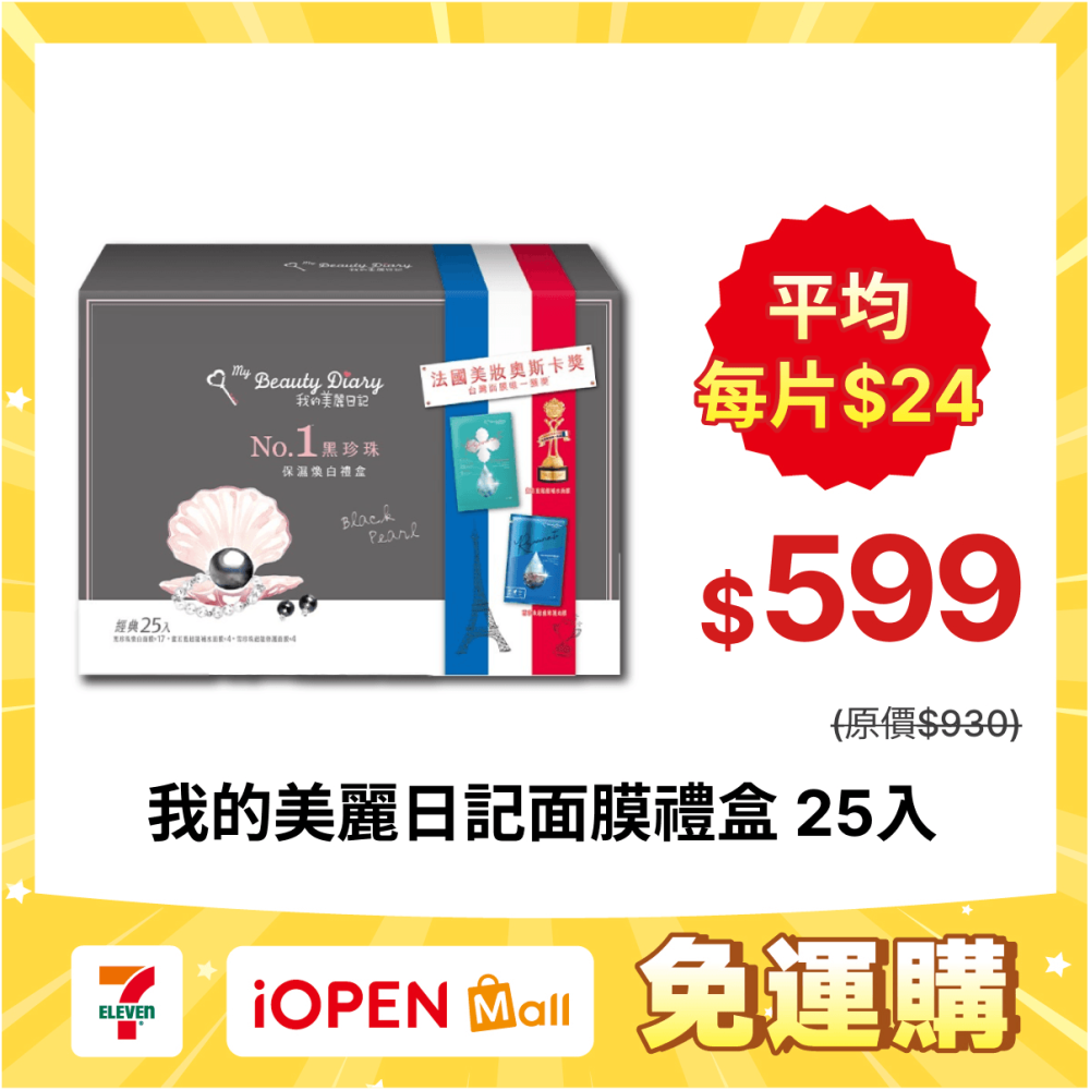 商品名稱 我的美麗日記NO1黑珍珠保濕煥白禮盒25入