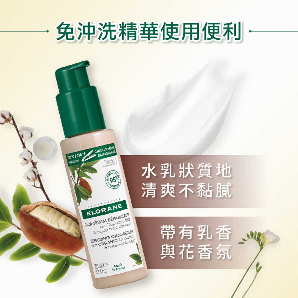 ◉古布阿蘇果油,高度滋養及修護髮絲◉免沖洗精華,水乳狀質地不黏膩;不添加矽靈、Paraben類防腐劑、矽靈