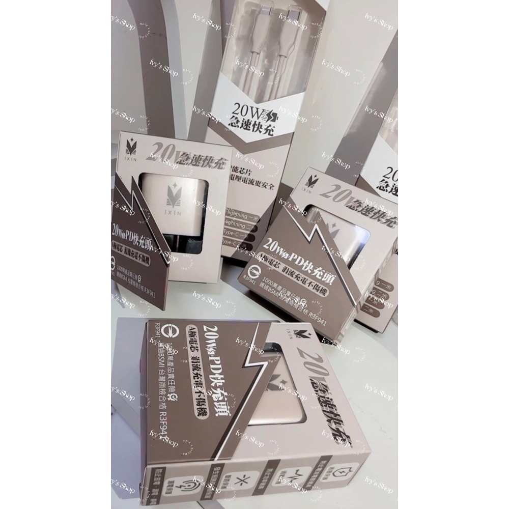 iXIN冰晶奶快充組 充電線 20W快充 BSMI認證