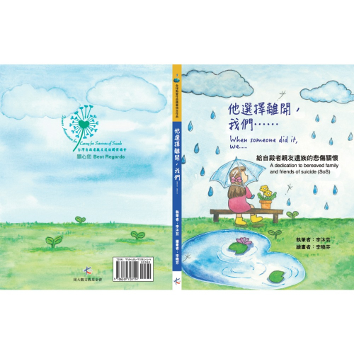 繪本的文字是我在2006年建構遺族悲傷特徵及任務時所寫,當時寫的放下困惑、同理逝者、告別逝者、創造意義,再經過十多年的歷練,面對相同的文本重新詮釋,覺得接納困惑、理解自殺、連結回憶、投入生活更為合適。