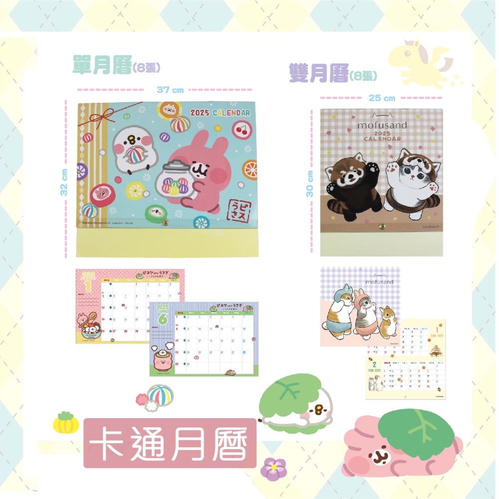 ★ 正版授權卡通商品 ★ 封面塑膠夾銅扣可吊掛 ★ 內頁25x25cm*6張12頁彩色雙月曆材質:紙 尺寸:25x30cm(展開25x55cm) 附件:信封 產地:台灣