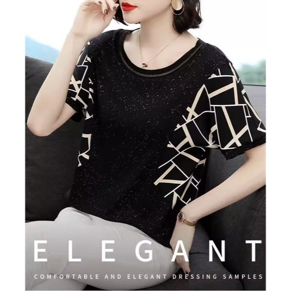 短袖女2023夏季新款拼接打底衫寬松大碼時尚中年媽媽裝顯年輕T恤