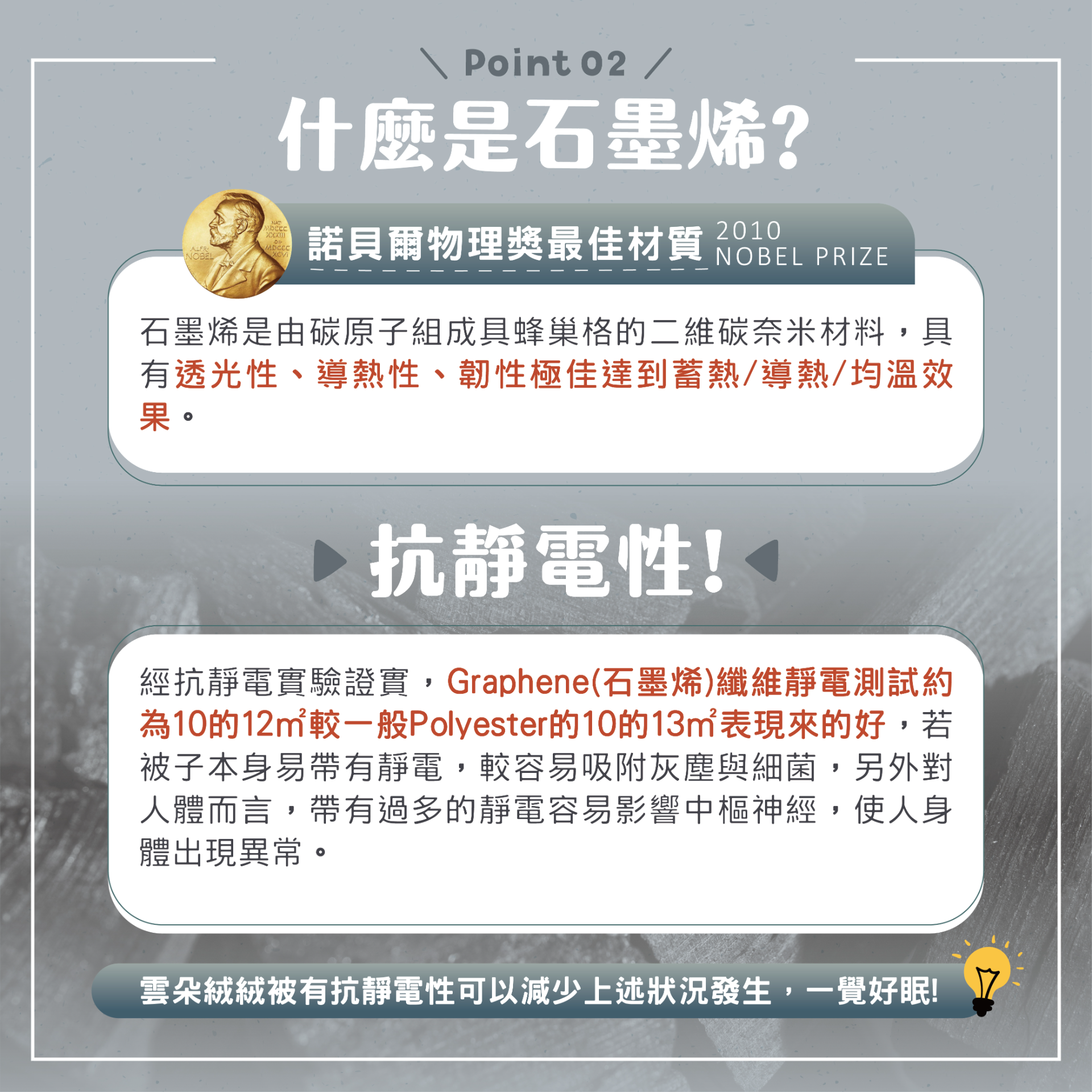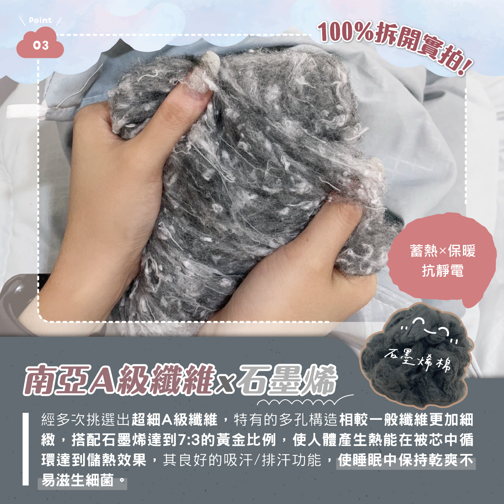 ✓ 添加石墨稀快速導熱、保暖蓄熱力高、釋放電荷,防止靜電
