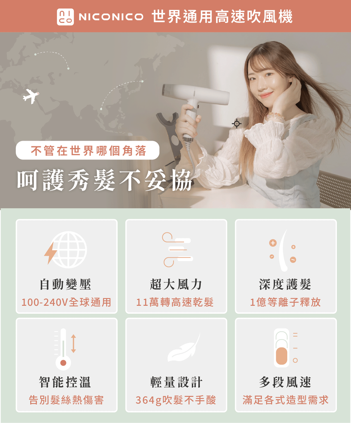 𝗡𝗜𝗖𝗢𝗡𝗜𝗖𝗢 世界通用高速吹風機 NI-IH2413