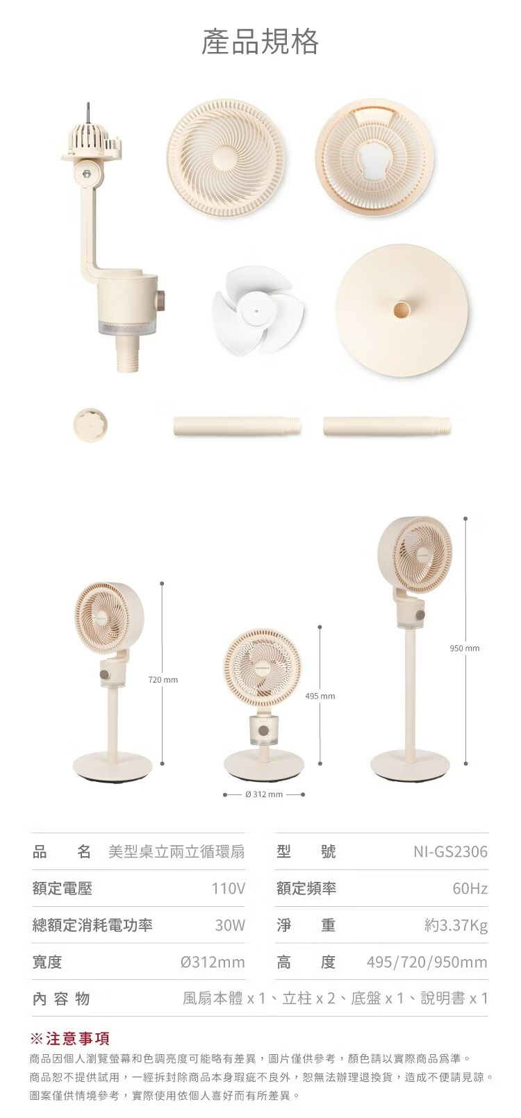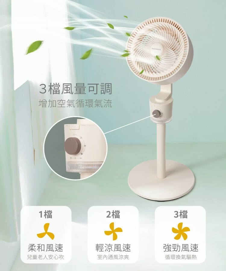 【NICONICO】美型小夜燈桌立兩用循環扇(NI-GS2306)