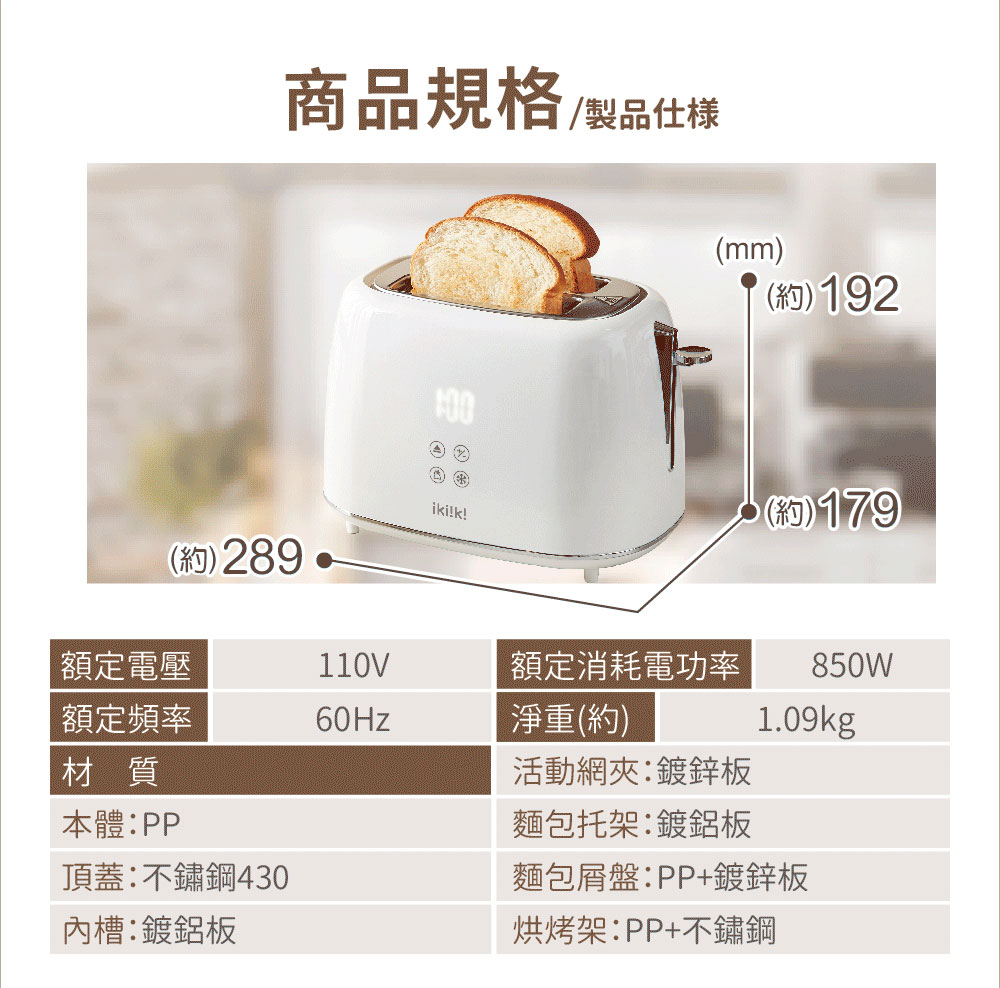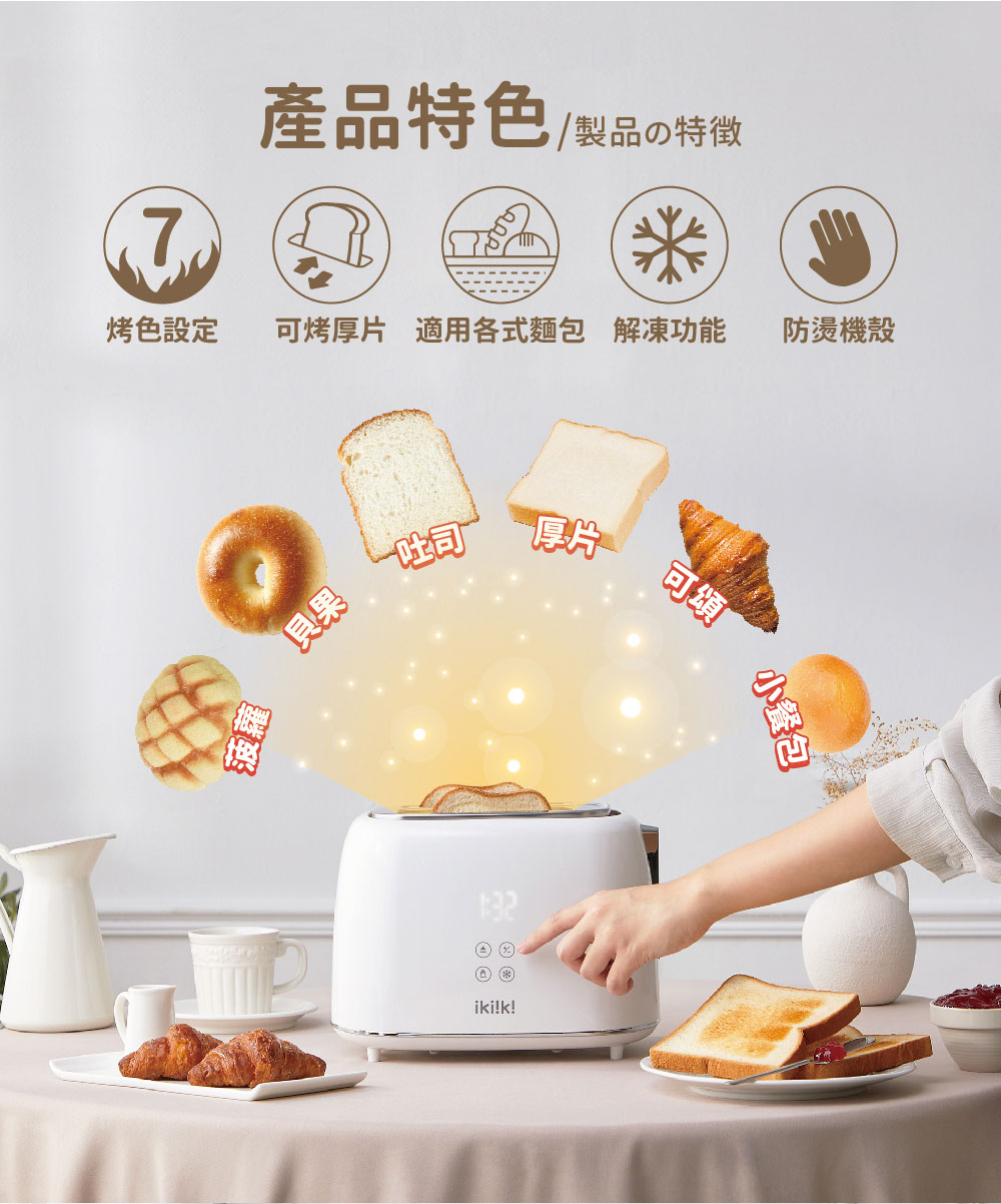 【ikiiki 伊崎】螢幕顯示日式烤麵包機 IK-ET3301(烤土司機 早餐機 貝果機)