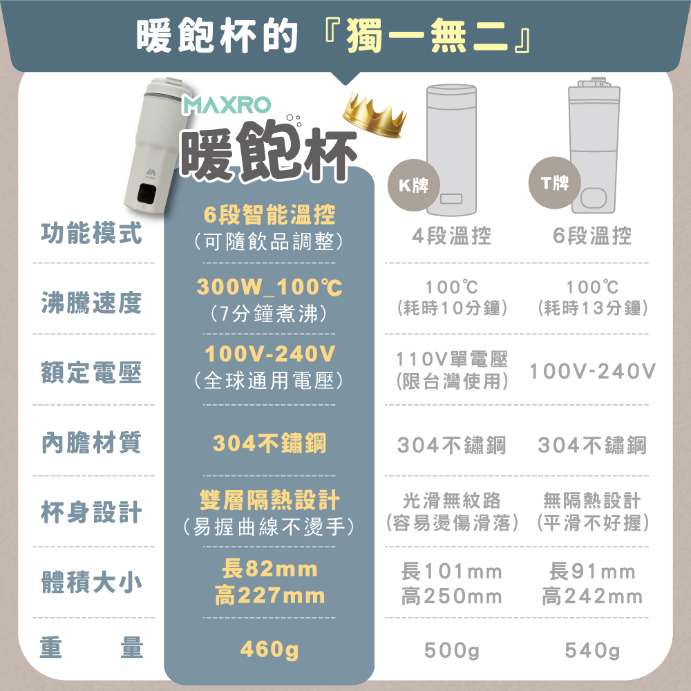 【MAXRO】 雙電壓智能溫控熱水壺 暖飽杯 MX-TB6501(附品牌提袋*1個)