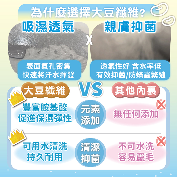 ✓ 大豆纖維持久耐用,機洗也沒問題