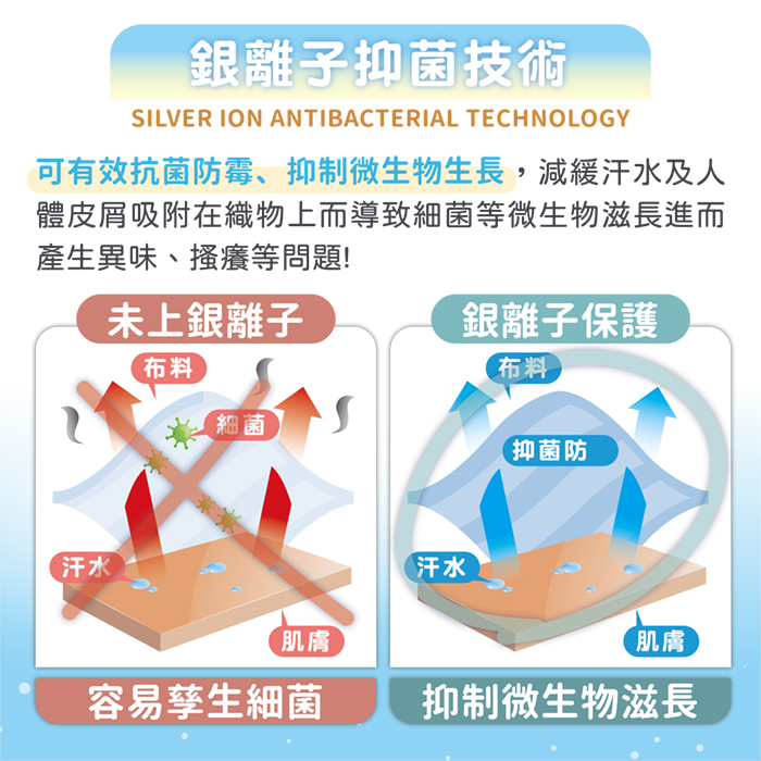 ✓ 銀離子防護,吸濕透氣x親膚抑菌