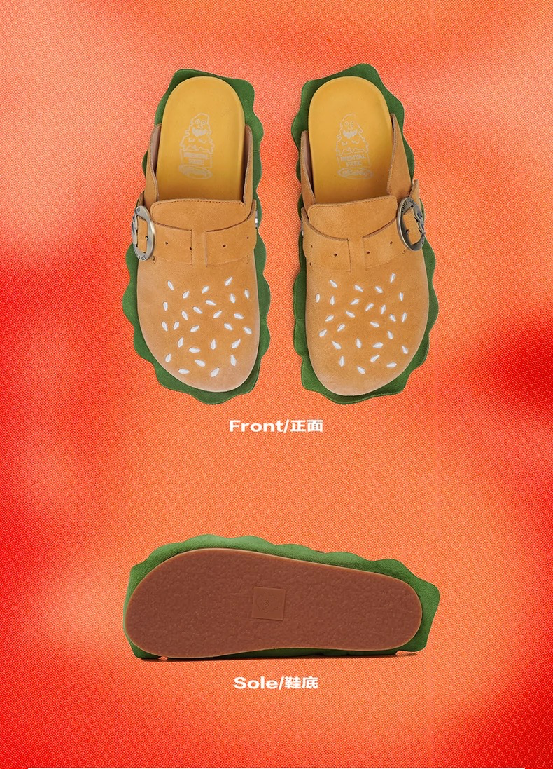 鞋子以漢堡為設計靈感,結合勃肯鞋經典的鞋底,讓你在享受時尚的同時也能感受到極致的舒適感。鞋面設計細節細膩,色彩鮮明,讓你在街頭引人注目。適合休閒、出遊或日常穿搭,是一雙兼具個性與實用性的獨特鞋款。
