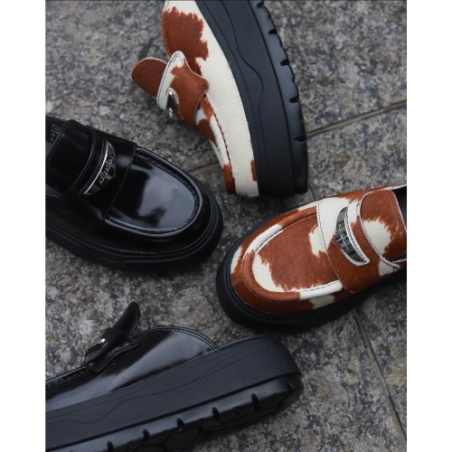 黑色、黃色是是皮革鞋面,還有可愛的馬紋配色搭配馬毛鞋面