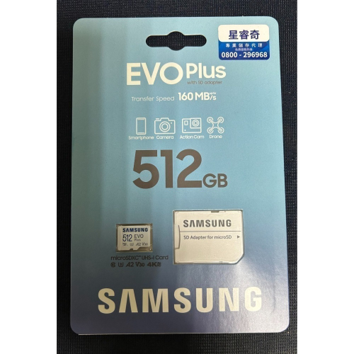 SAMSUNG 三星EVO Plus microSDXC UHS-I U3 A2 V30 512GB記憶卡 公司貨 (MB-MC512SA)