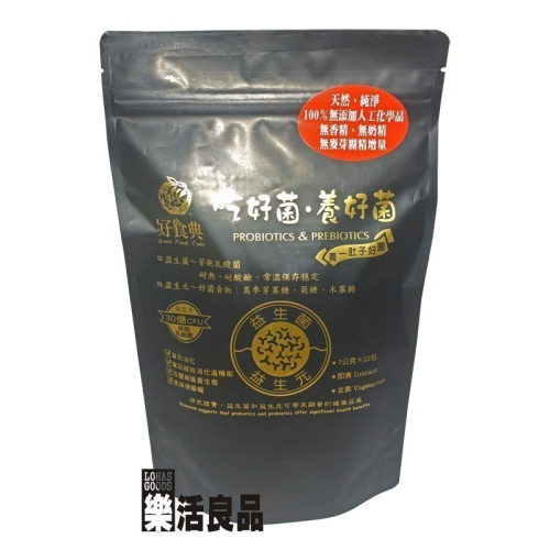 產品特色:1、本品嚴選益生菌---芽孢乳酸菌,耐熱、耐酸鹼、常溫保存穩定;並添加優質益生元(好菌食物)---異麥芽寡糖、菊糖、木寡糖,可幫助消化、、改變細菌叢生態、使排便順暢。
