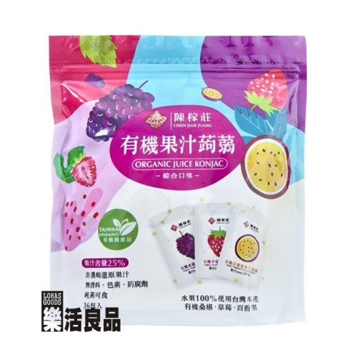 百香果蒟蒻:水、有機百香果原汁(台灣)、科克蘭有機蔗糖(巴西)、蒟蒻粉、鹿角菜膠、檸檬酸鉀、乳酸鈣、玉米糖膠。