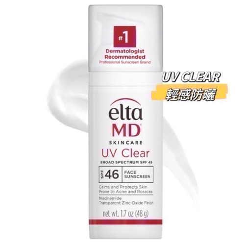 英文品名:EltaMD UV Clear Face Sunscreen, Oil Free Sunscreen with Zinc Oxide, Dermatologist Recommended Sunscreen, Travel Size, 1.7 oz Pump