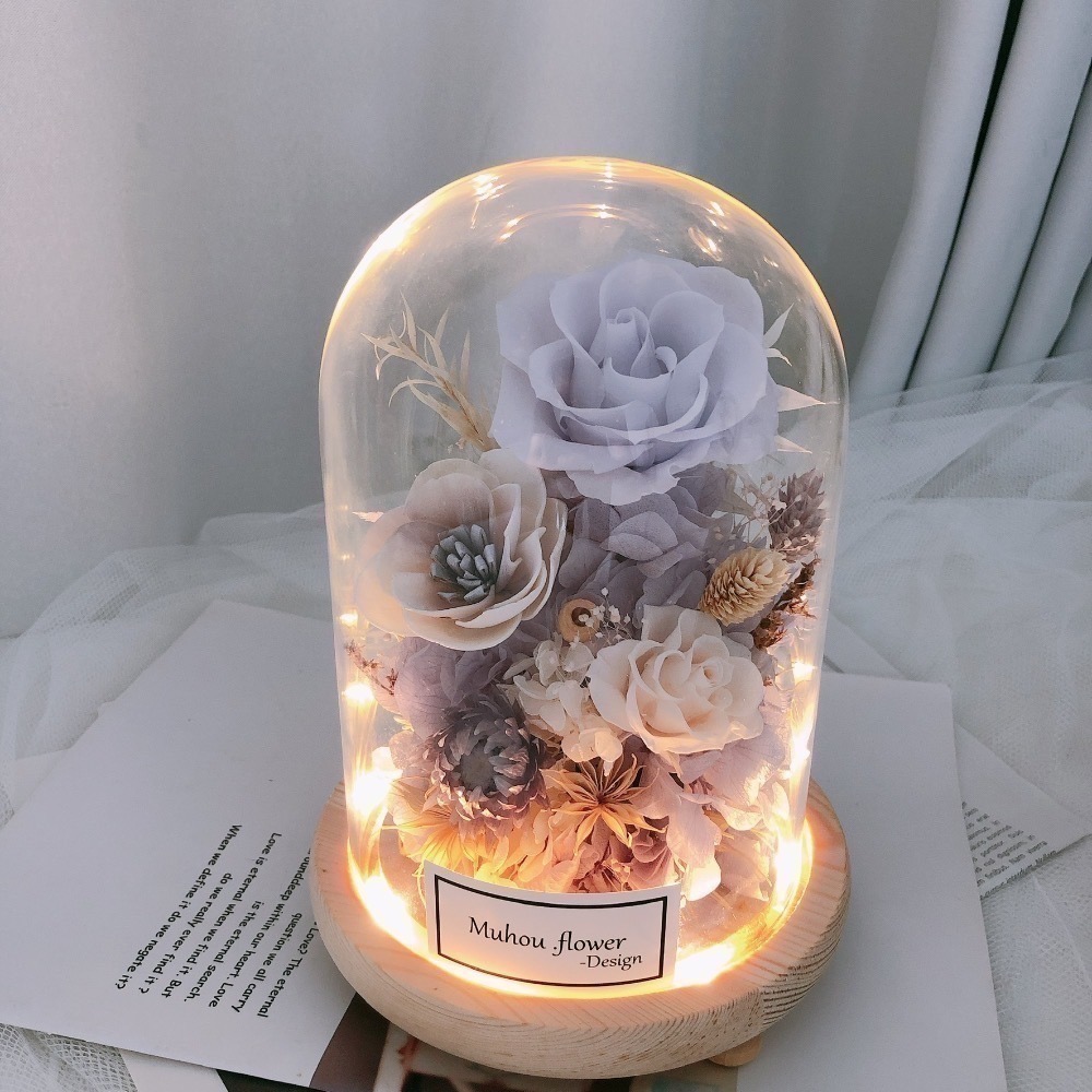 永生花玫瑰玻璃罩 淡紫色系 居家擺設