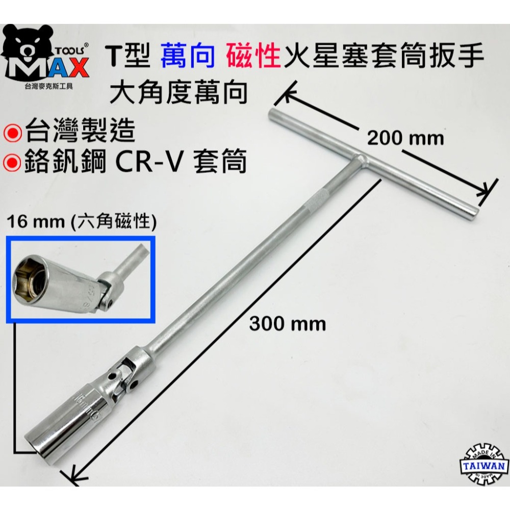 專業級 T型 萬向 16mm ( 5/8") 磁性火星塞套筒扳手