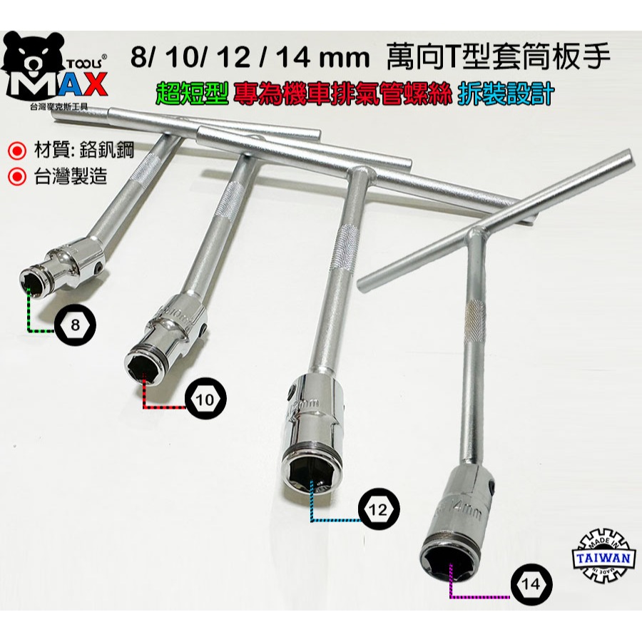 T型萬向板手 8 mm 10 12mm 新式特短萬向T桿 萬向套筒板手 拆機車排氣管螺絲 T型套筒板手