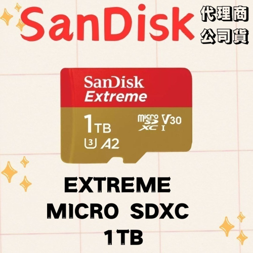 全新公司貨 SanDisk Extreme Micro SDXC 1T 1TB U3 V30 A2 記憶卡