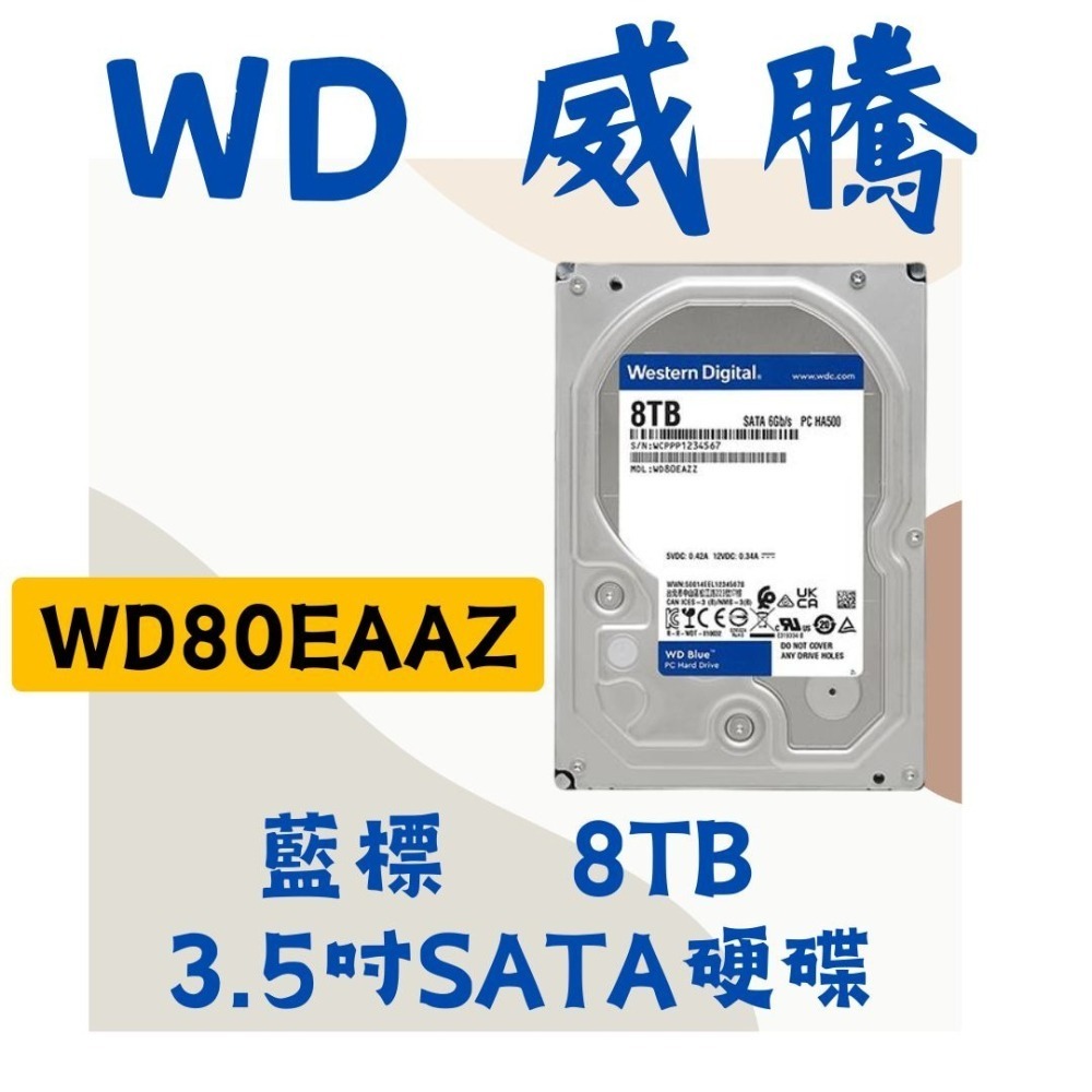全新公司貨 WD 威騰 WD80EAAZ 藍標 8T 8TB 3.5吋 桌上型 SATA 內接硬碟