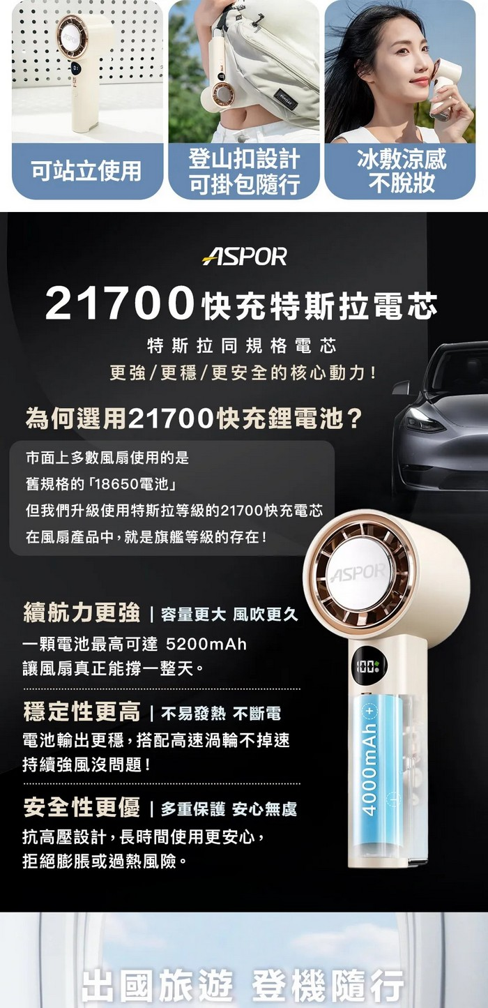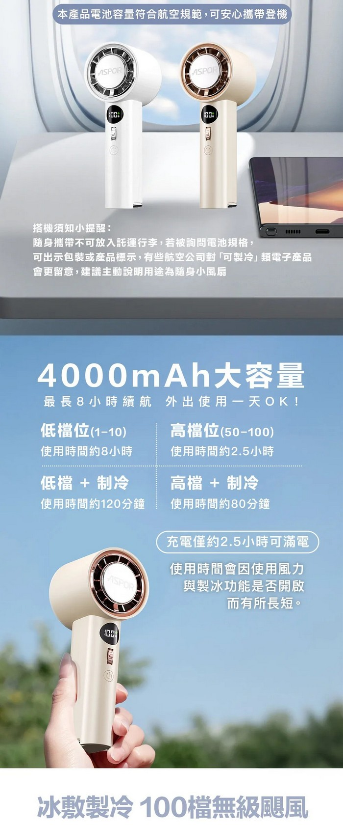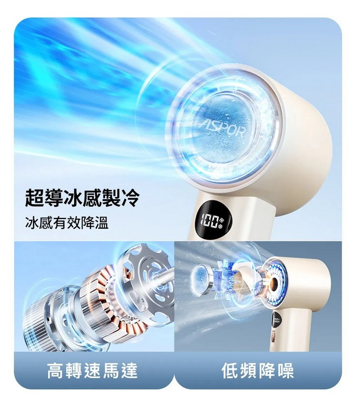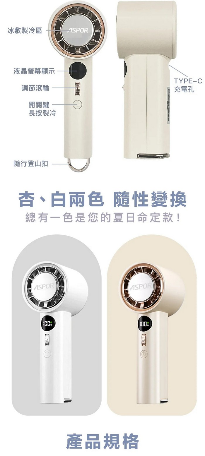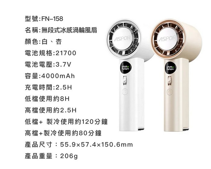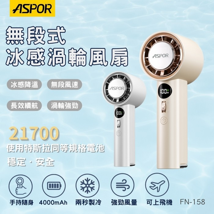 全新公司貨 ASPOR 無段式冰感渦輪風扇 FN-158 手持風扇 隨身風扇 迷你風扇