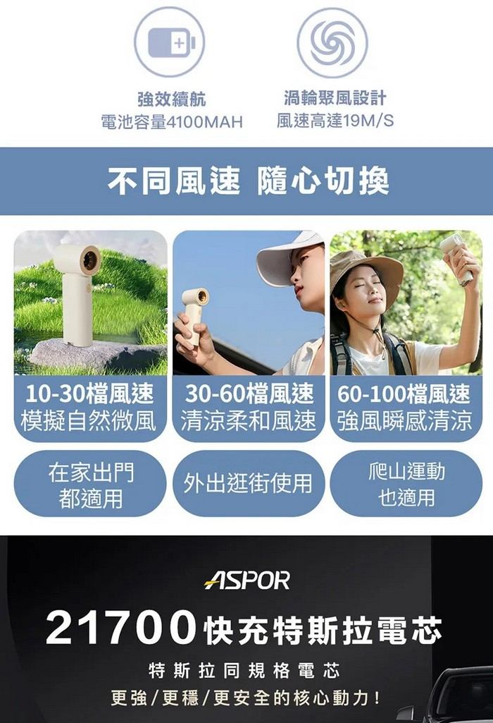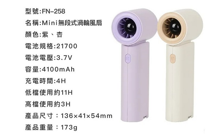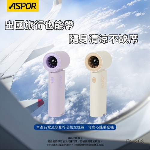 全新公司貨 ASPOR Mini無段式渦輪風扇 FN-258 手持風扇 隨身風扇 迷你風扇