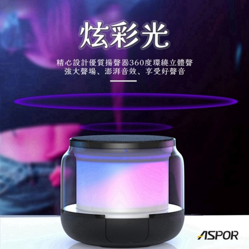 全新公司貨 ASPOR A676 炫彩光小型智能無線藍芽音響 TWS 可免持通話