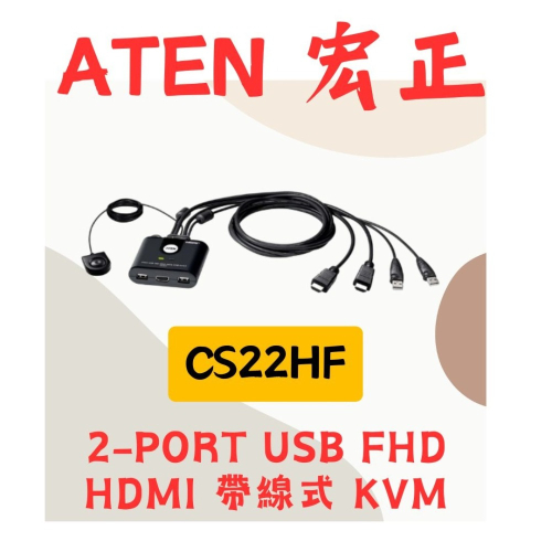 全新公司貨 ATEN 宏正 CS22HF 2-Port USB FHD HDMI 帶線式 KVM 多電腦切換器