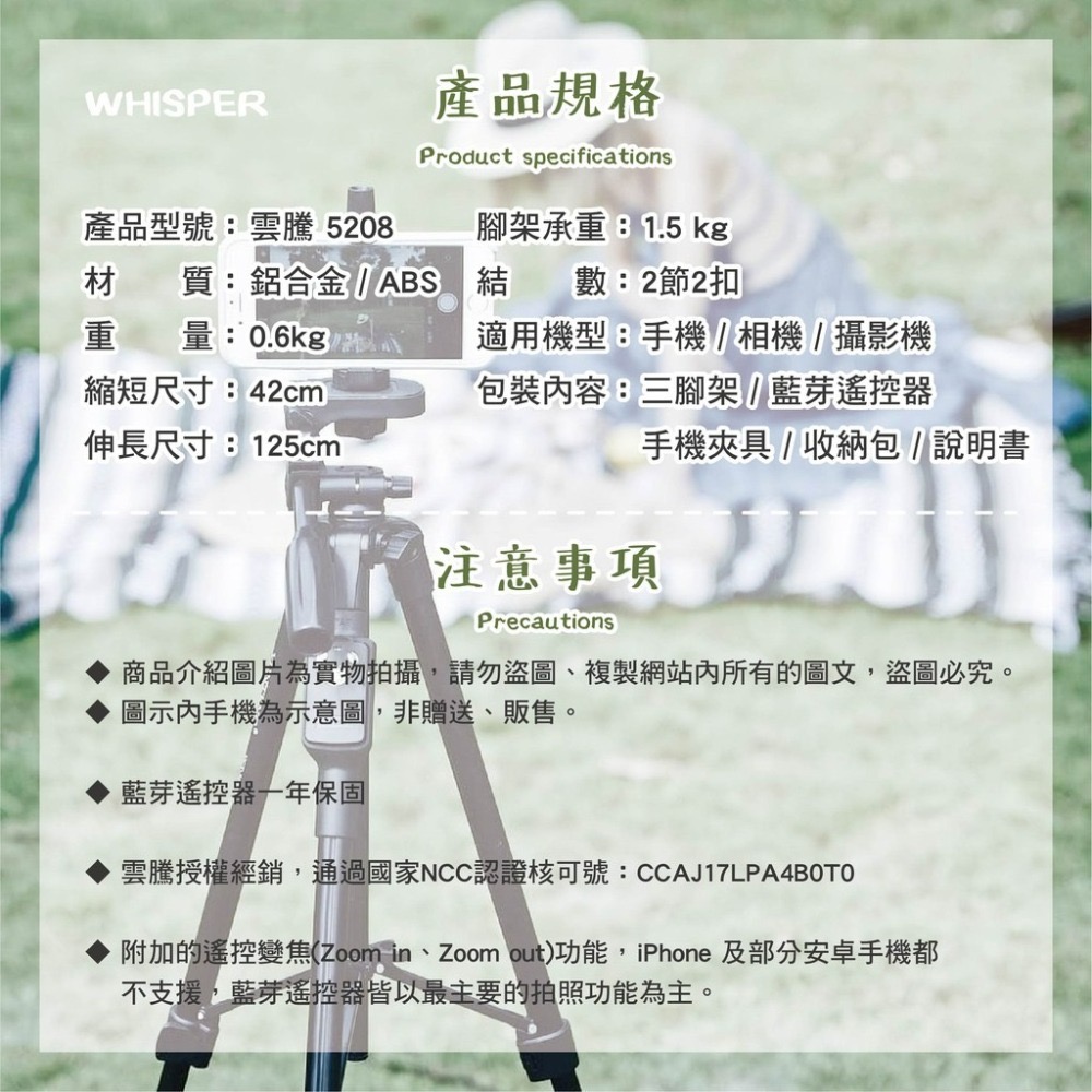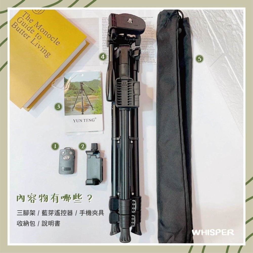 ✔️內附:原廠三腳架、手機夾具、藍芽遙控器電池式、收納揹袋、電池兩顆(CR2032電池)、說明書