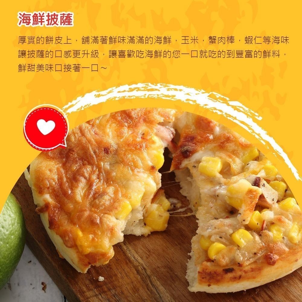 海鮮披薩成分:麵粉、乳酪絲(乾酪、棕櫚油、酪蛋白、黏稠劑(醋酸澱粉、鹿角菜膠)、調味劑(氯化鉀)、鹽、調味劑(檸檬酸鈉)、品質改良劑(磷酸鈉、多磷酸鈉)、乳清粉、奶粉、調味劑(檸檬酸)、馬鈴薯澱粉(外灑粉)、大豆沙拉油、色素(黃梔子、婀娜多))、玉米粒、蕃茄醬(水、砂糖、蕃茄糊、麥芽糖、乙醯化已二酸二澱粉、鹽、調味劑(檸檬酸、DL-蘋果酸)、玉米糖膠、多磷酸鈉、異抗壞血酸鈉(抗氧化劑)、已二烯酸鉀(防腐劑)、甜菊糖苷(甜味劑)、食用紅色六號)、蟳味棒(魚肉(金線魚)、玉米澱粉、樹薯粉、磷酸二澱粉、葡萄糖、大豆油、砂糖、食鹽、L-麩酸鈉、大豆蛋白、小麥蛋白、蟹調味(甲殼類萃取物(蝦粉)、貝類萃取物(牡蠣)、大豆)、雞蛋白粉、食用色素(紅麴色素))、糖、章魚丁、洋蔥、大豆沙拉油、蝦仁、鹽、酵母(酵母、大豆油、乳化劑(山梨醇酐單硬脂酸酯)、抗氧化劑(維生素C)、阿拉伯膠)、黑胡椒粒