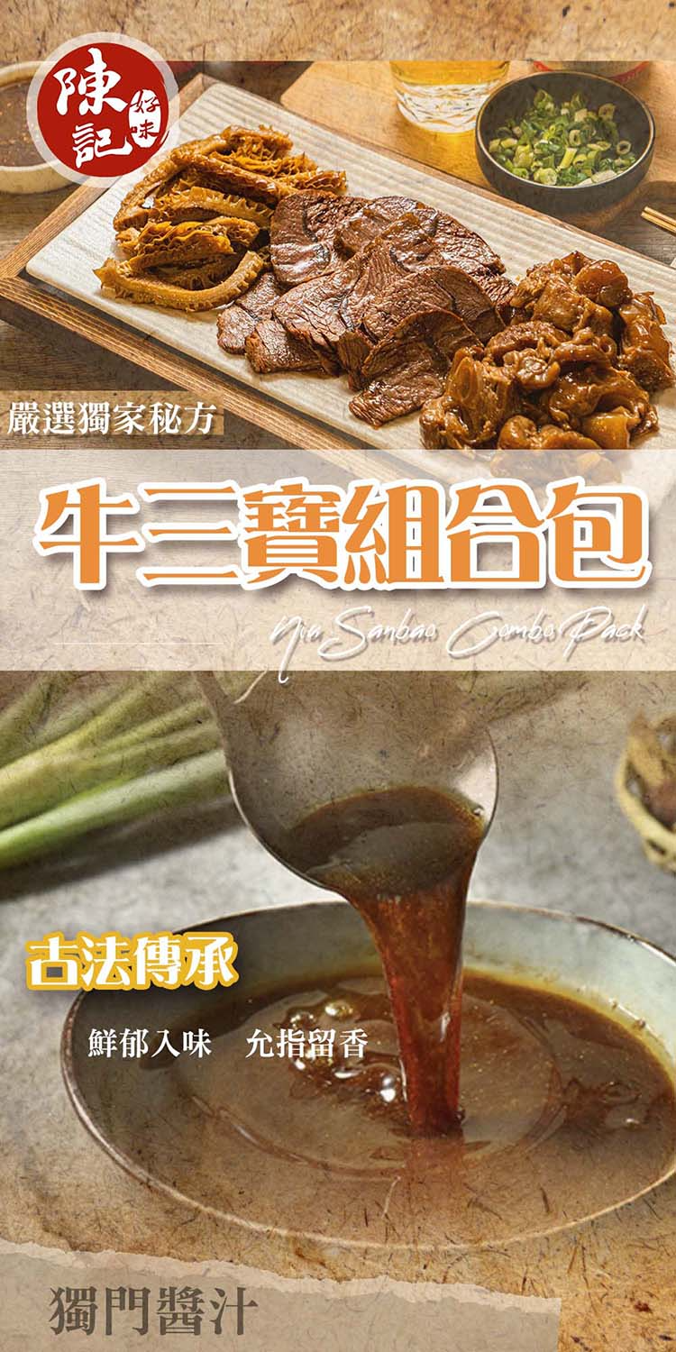 2.商品品名:【陳記好味】獨家滷汁配方滷牛三寶(牛筋+牛肚+牛腱)