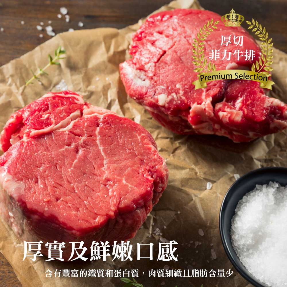 2.商品品名:美國和鑽牛厚切2cm菲力牛排1包組(280g±10%/3~5片/包)