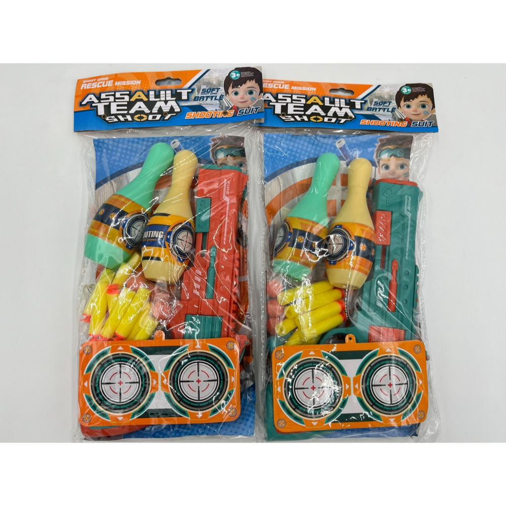 ●附10個子彈(子彈長度約5.5公分)、10個小球、保齡球瓶*2、玩具槍*1