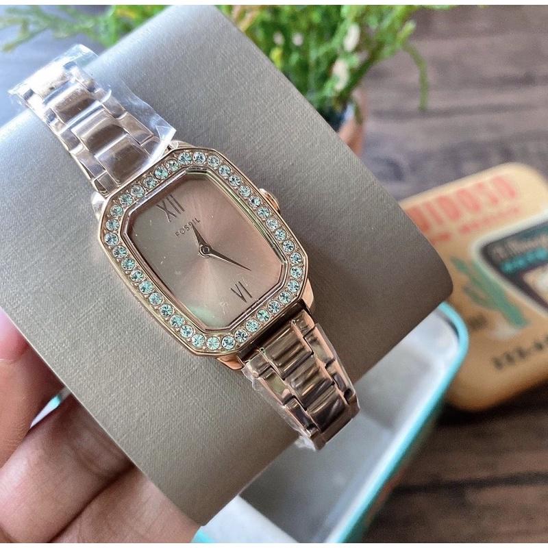fossil 玫瑰金方錶鑲鑽 BQ3670