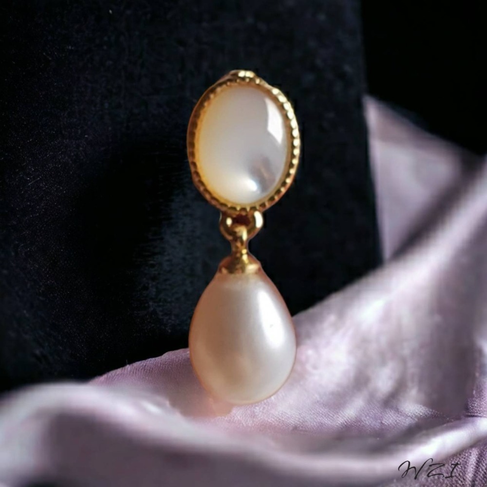 蛋面白貝母k金包邊/7m*9m天然淡水白珍珠/附高保色k金項鍊