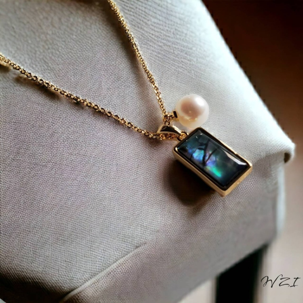 商品尺寸:8m+天然淡水珍珠/ 天然七彩貝母16m*9.5m/k金項鍊